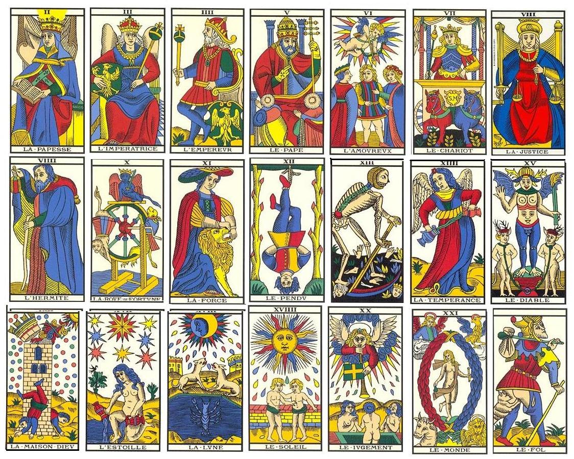 as cartas são numeradas ( influência da numerologia), são coloridas ( aspectos da cromoterapia),